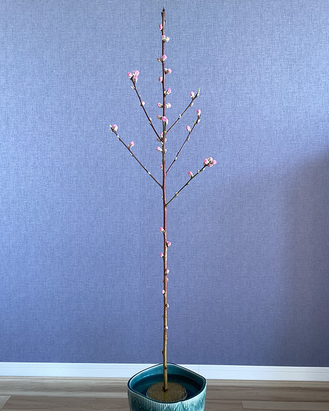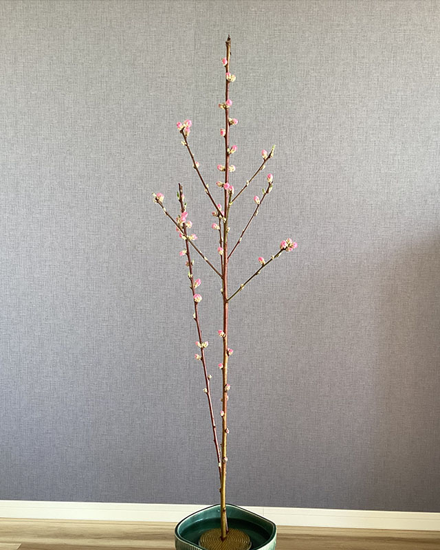 ・本来は、日焼けしている方を向かって左に向けるのですが、今回は、枝のしなり方を優先して生けています。