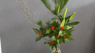 お正月のお花です。花材や雰囲気を写真と一緒に紹介しています。